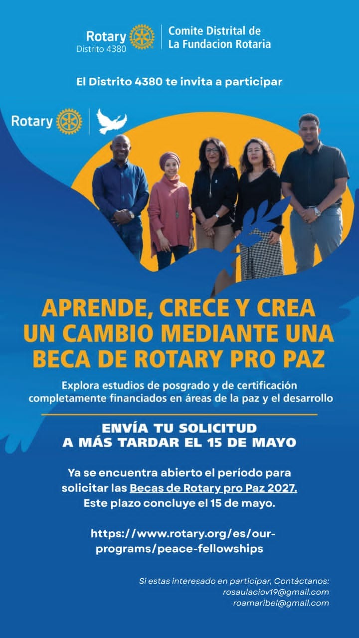 La educación es el motor para el desarrollo de una sociedad y Rotary lo sabe. Por ello, el Distrito 4380 de Rotary International ha anunciado oficialmente la apertura de la convocatoria a las Becas Pro Paz, un programa de becas diseñadas para formar líderes capaces de construir una sociedad sustentable a través de la excelencia profesional.